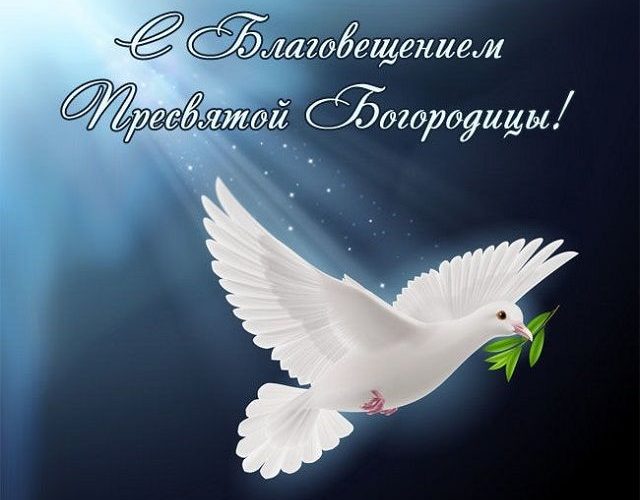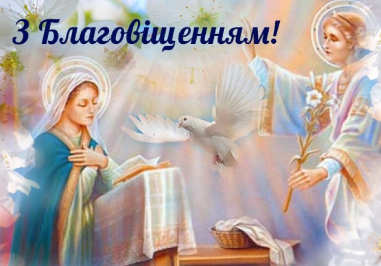 Вітаю тебе з Благовіщенням Пресвятої Богородиці! Нехай у домі живуть мир, любов, добробут і Божа благодать. Нехай матеріальні та духовні блага будуть в достатку, а в двері стукають тільки благі вісті!
