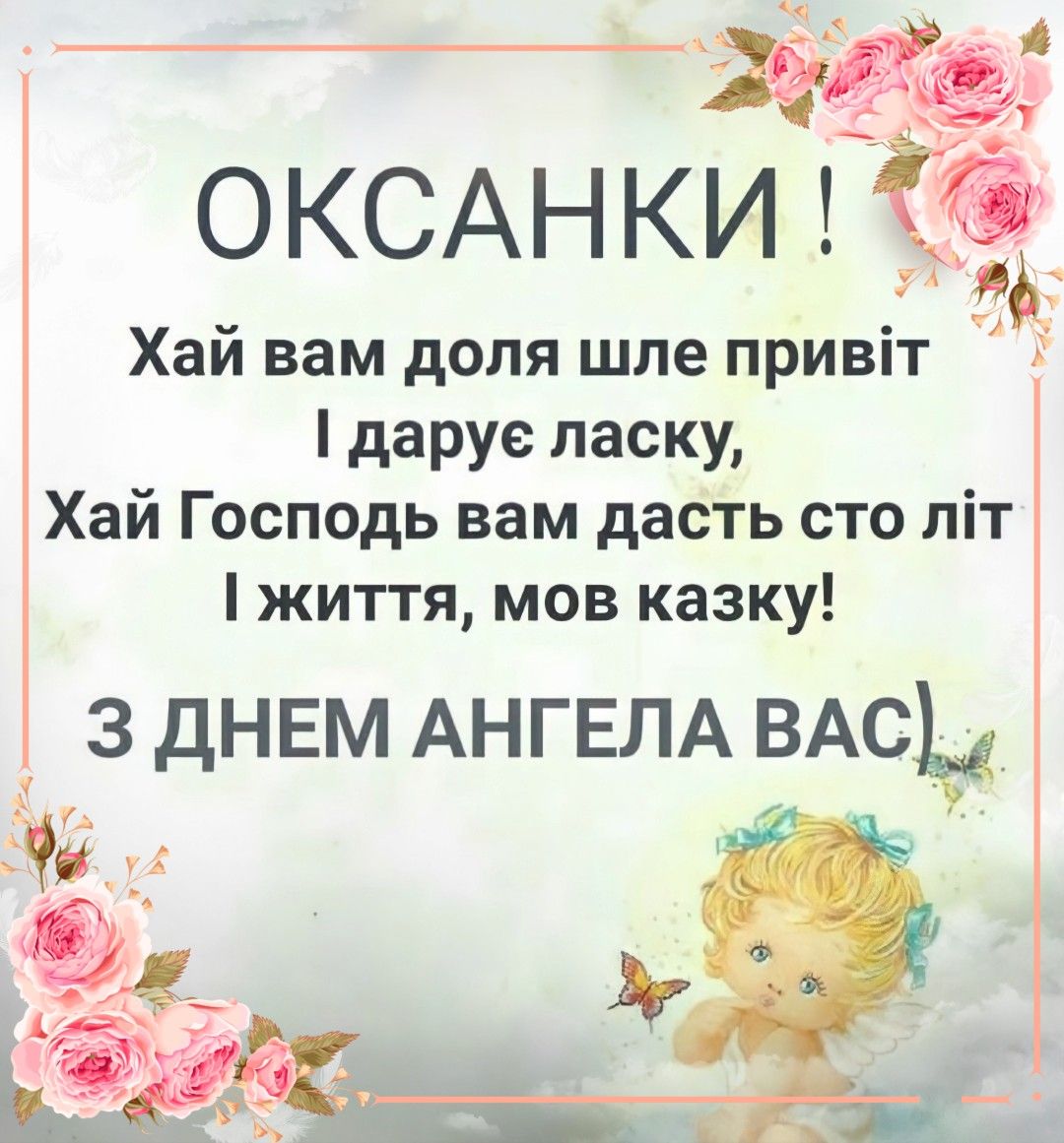 З днем ангела Оксанко, вітаєм,