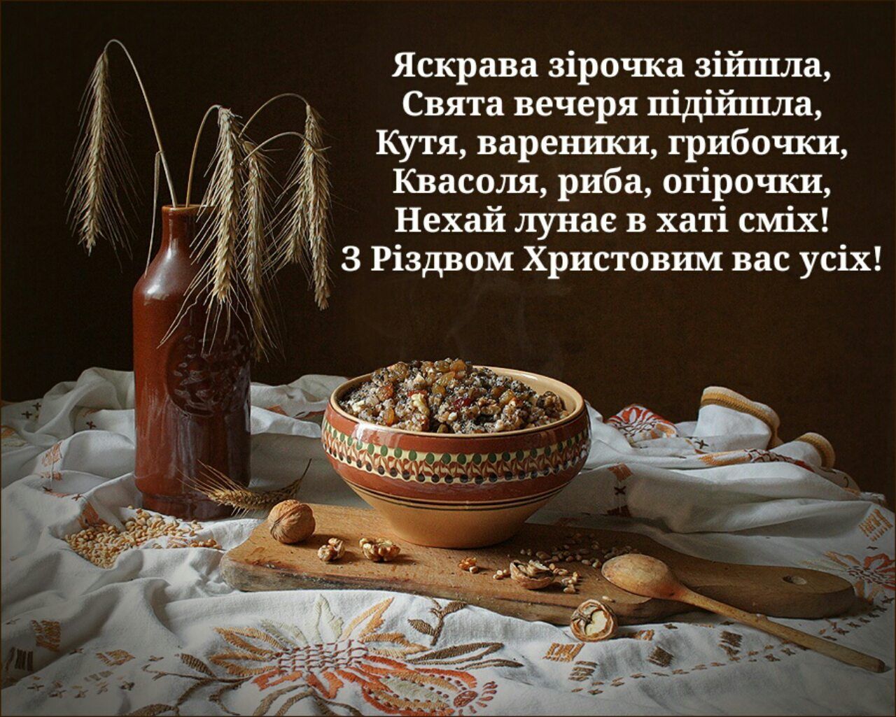 Сьогодні святвечір, велике і чарівне свято! Нехай сьогодні душі ваші будуть зігріті теплом святкових свічок і посмішками ваших близьких. Бажаємо вам, щоб в цю ніч сповнилися ваші найказковіші бажання. Нехай різдвяні колядки наповнюють ваші серця добром і любов’ю. І нехай різдвяна зірка яскраво світить вам удачею
