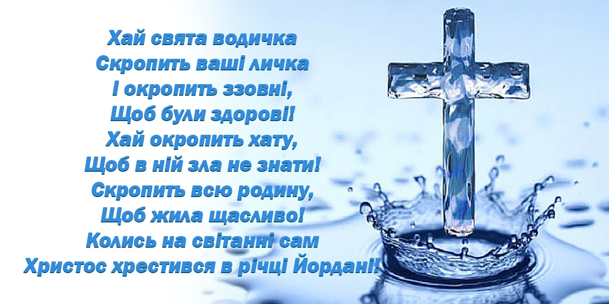 Вітаю з Хрещенням Господнім! Хрещення — свято очищення і оновлення, і в цей день я хочу вам побажати, що б ваше життя стало світлішим і чистішим, щоб благодать зійшла на ваш будинок і всі близькі були здорові і щасливі