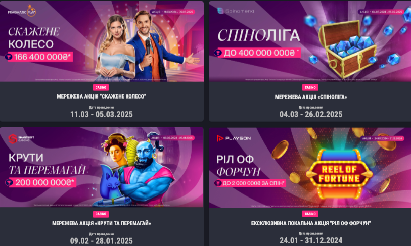 Відкриває рейтинг найбільших акцій пропозиція від Spinomenal – розробника багатьох хітових «книжок» та фруктових слотів. У «Спінолізі», що проходить з 4 березня 2024 року до 26 лютого 2025 року, гравці змагатимуться за багатомільйонні призові протягом чотирьох етапів-сезонів.