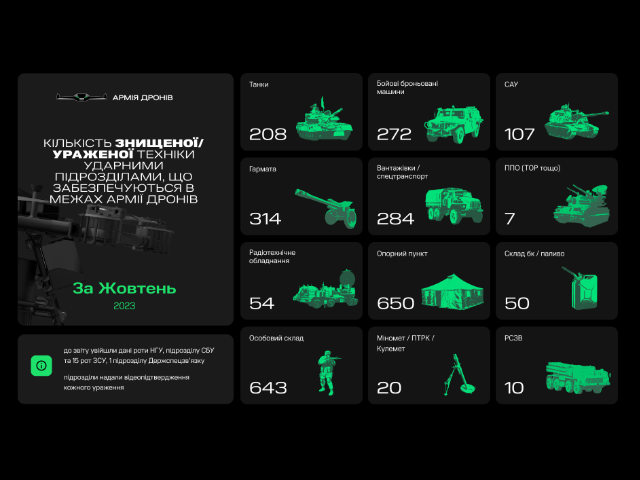 За місяць кількість ураженої техніки сягнула 1056 одиниць. Також уражено понад 591 одиниць особового складу.
